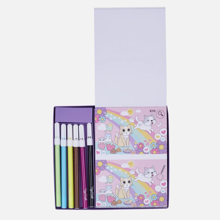 Keep little ones occupied whilst honing their creative and cognitive skills with Pet Pals Activity Pack. Jam-packed full with original illustrations of kawaii, playful pets designed by our in-house creative team, these affordable activity packs are designed for easy portable play. Tiny artists can colour mazes, ‘finish the picture’ and colour by numbers on flights, cars, in cafes or during quiet time at home.