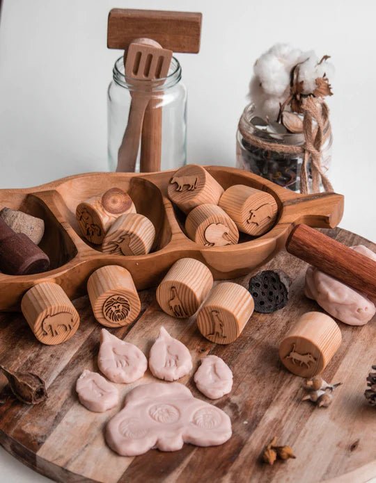 BEADIE BUG PLAY | WOODEN AFRICAN ANIMALS PLAYDOUGH STAMPS