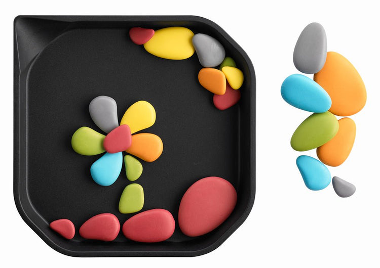 Fun2 Messy Tray is an activity tray for sensory drawing, loose parts play, blackboard drawing and organising and storing small beads.