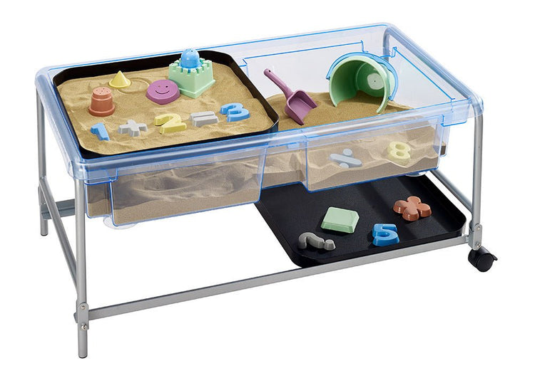 A sturdy clear tray with 2 black lids allows for many combinations of open ended play with easy organisation and pack up.