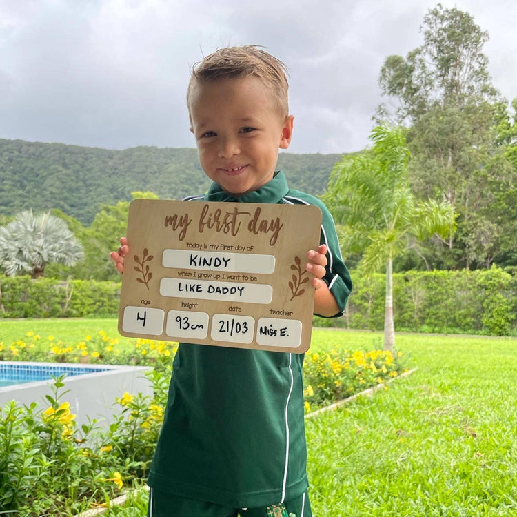 Our First Day Boards come in your choice of Whiteboard (white) or Chalkboard (black) style. This board is one sided with First Day on front Whiteboard (with white writing area) - you are able to write with any standard whiteboard marker.