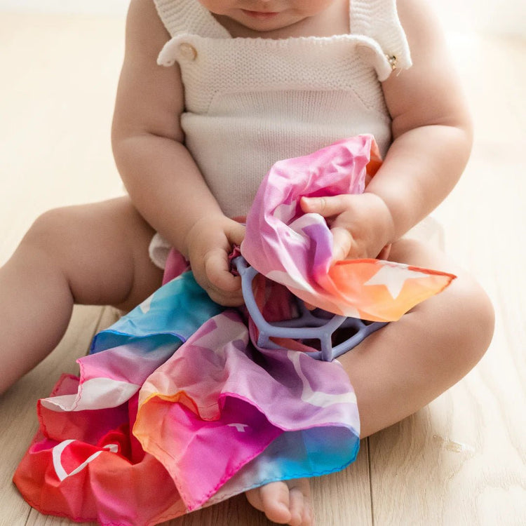 This collaboration was inspired by witnessing the inventive ways our wonderful customers combined a Play Silk and Sensory Ball during play. You can thread the Play Silk through the ball, pull it, wave it, or shake it! How will you play?