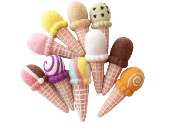 These adorable ice creams have been ethically handcrafted by Juni Moon's team of talented artisans using a felt needling technique over many hours, made using 100% New Zealand sheep’s wool using non toxic dyes.