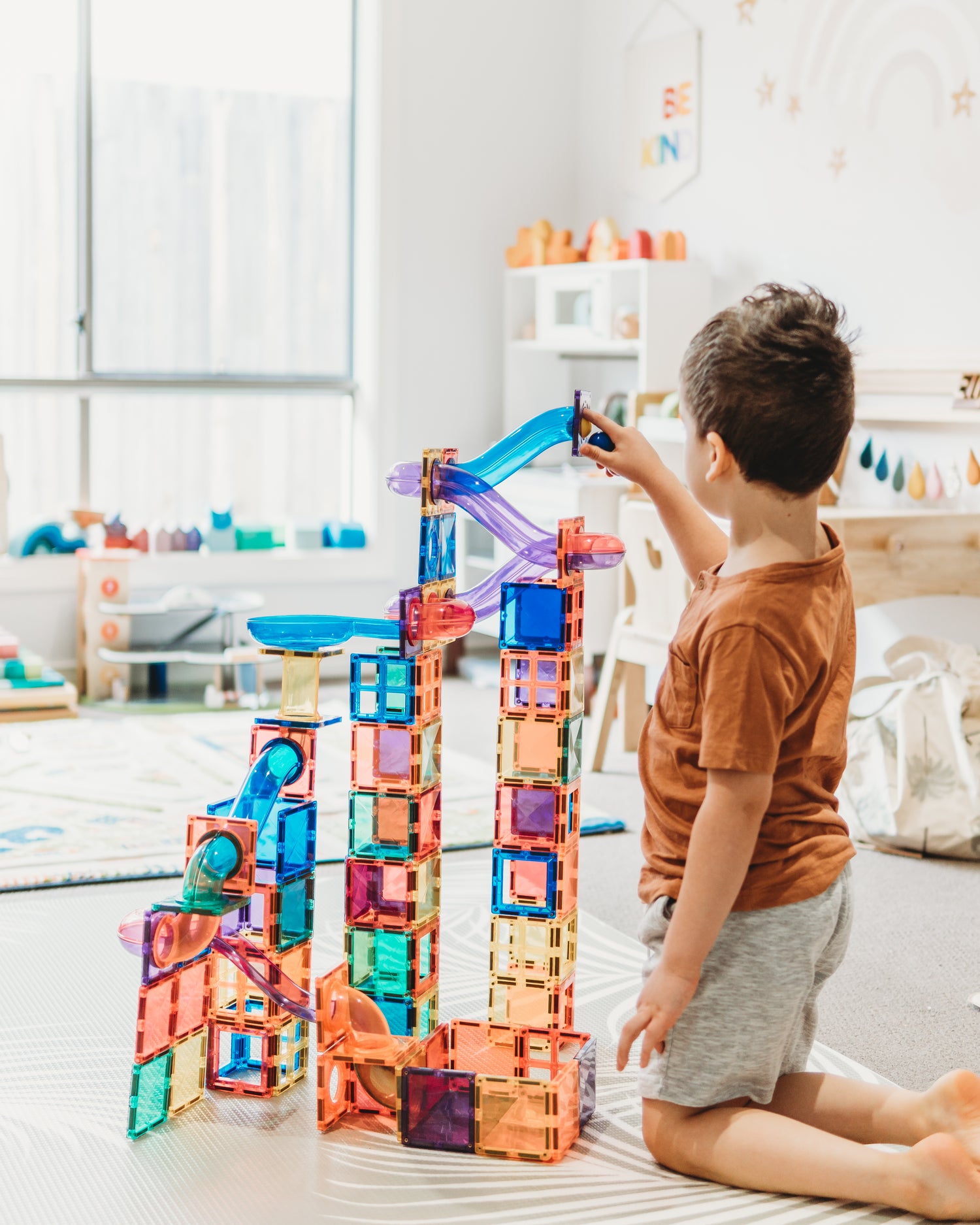 Take your magnetic tiles to a new level of creative play with the Learn & Grow Magnetic Ball Run – Expansion Pack.