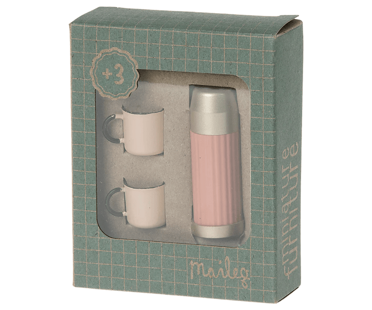 When the Maileg friends go out for a hike or field trip it is necessary to bring tea. This small set is made with the finest details that make the product very authentic. You can screw the lid off and the play can start.