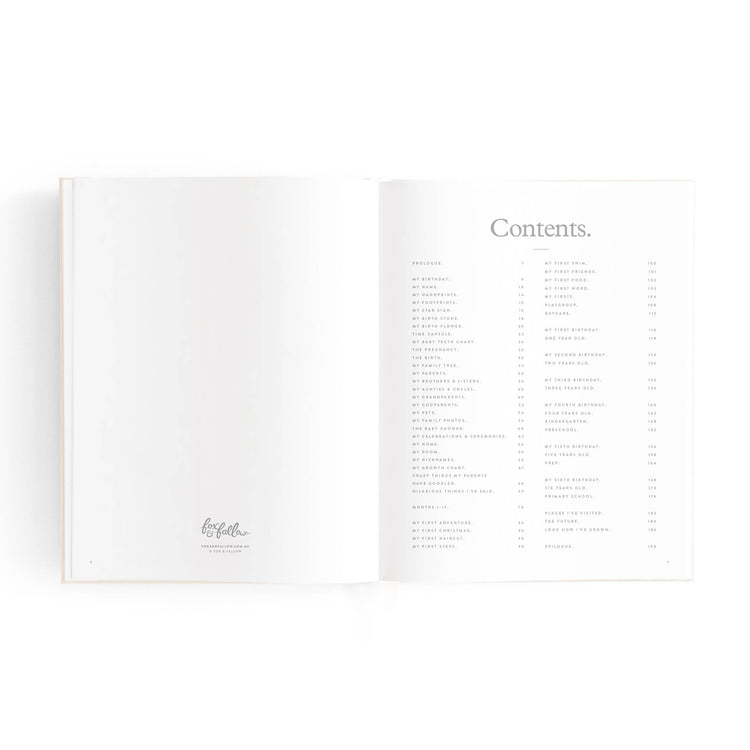 A beautiful keepsake for the whole family to enjoy. Includes: important milestones and firsts, family profiles, family tree and travel map, playgroup and daycare through to kindy and school years, time capsule, nicknames and celebrations, pets, friends, birthdays and more. 190 pages.