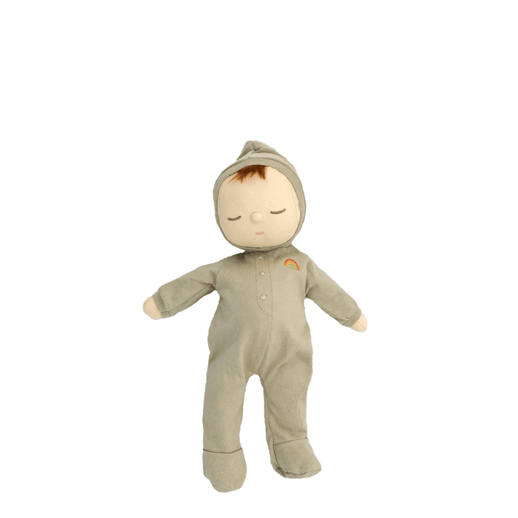 • Dozy Dinkums wear a non-removable cotton onesie with an embroidered rainbow on heart area.