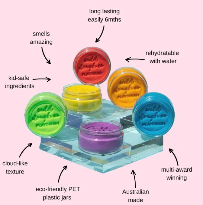 Wild Dough Playdough is deliciously scented, long lasting and luxuriously soft; made with little hands in mind. It provides a wonderful creative, tactile and sensory learning experience whilst developing fine motor skills. Your children will love squeezing, poking, pinching, squashing and patting it!