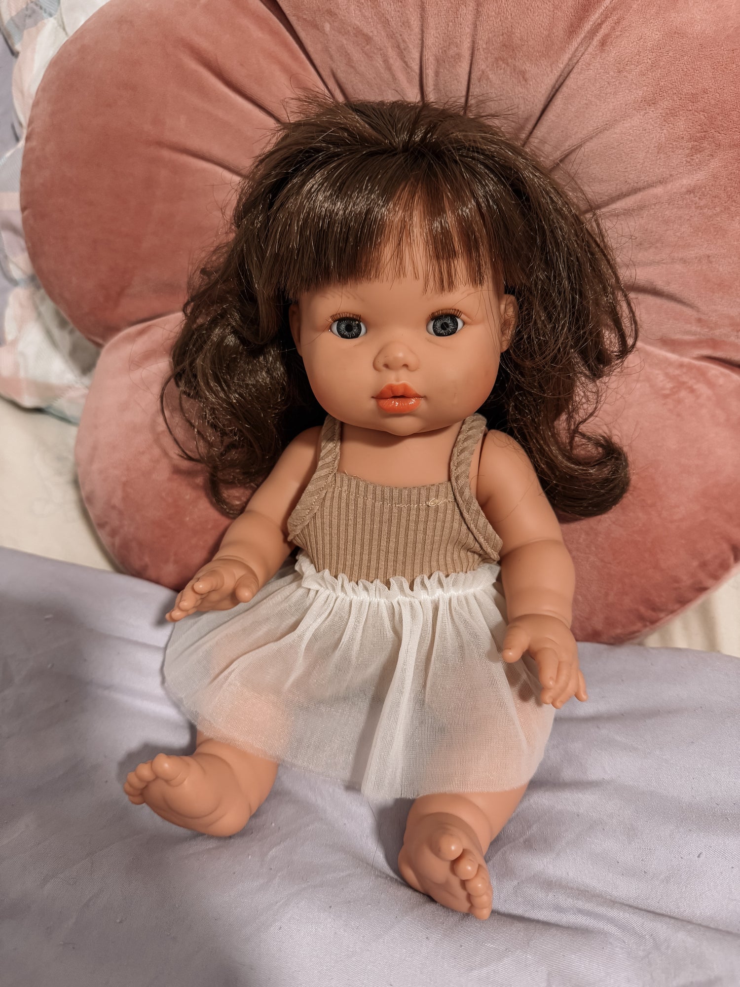 This sweet beige ballerina outfit is the perfect blend of cozy and cute. Featuring a ribbed knit bodice in a warm neutral tone and a soft, floaty tulle skirt, it turns any 33–35cm doll into the star of the show. Easy to slip on and oh-so-adorable, it’s made for tiny dancers, big imaginations, and endless pirouettes!