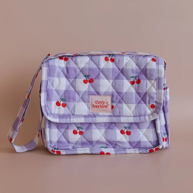 TINY HARLOW | TINY NURTURER'S GIFT PACK - NAPPY BAG, MAGIC MILK & BABY CEREAL - LILAC GINGHAM CHERRY