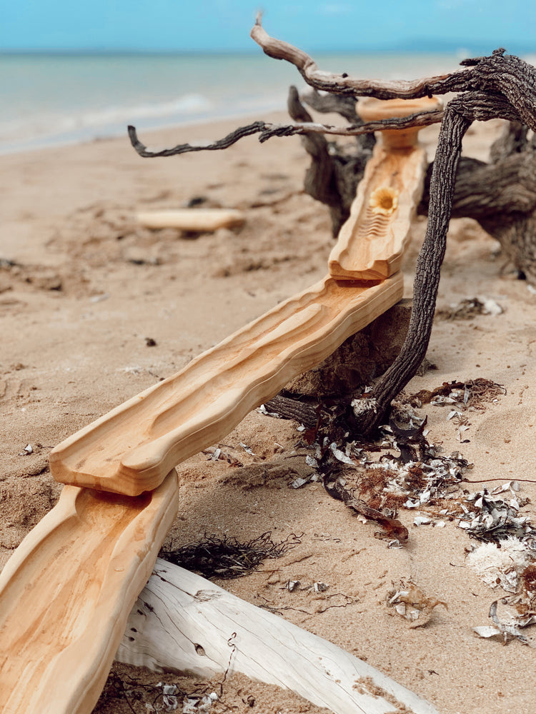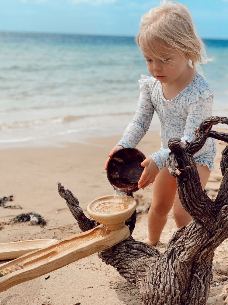 This natural crafted open-ended Wooden Water Ways set from Explore Nook is the perfect way for children to investigate and experiment with water flow outdoors. Children can construct their own wooden watercourses and then watch the water cascade down the rustic wooden channels, as they pour the water down a handcrafted wooden funnel! An ideal summer activity for warm days out in the backyard, barefoot.